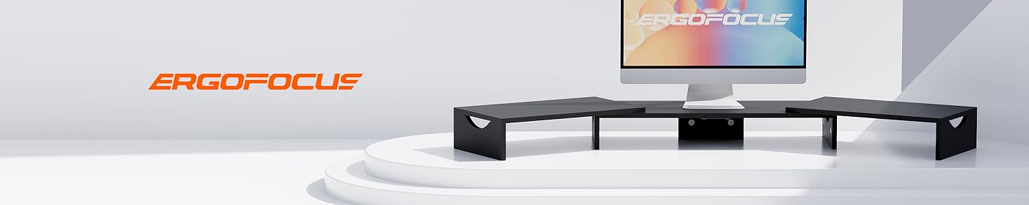 ErgoFocus Dual Monitor Stand Riser with Drawer-Adjustable Length and Angle, Monitor Stand Riser for 2 Monitors, Desktop Organizer Stand for Computer/Laptop/PC/Printer (Black)