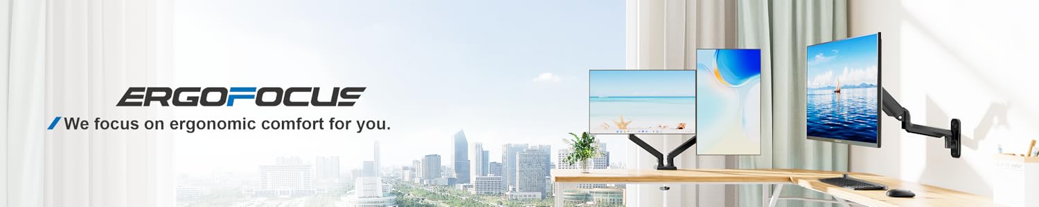 ErgoFocus Dual Monitor Mount Fits 13 to 32 Inch Computer Screen, Dual Monitor Arm Hold up to 19.8lbs Each, Full Motion Monitor Desk Mounts for 2 Monitors, Gas Spring Monitor Stand, VESA Mount