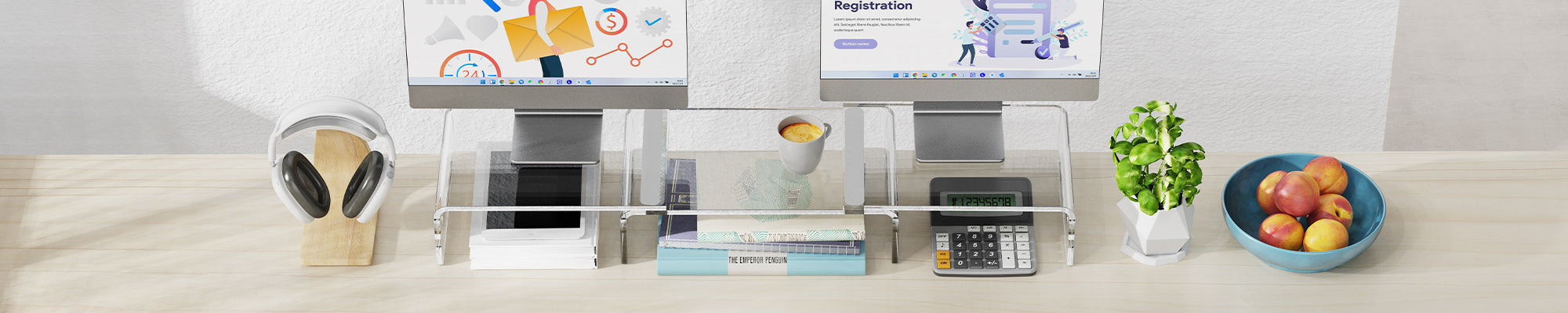 ELIVED Taller Dual Monitor Stand Long Arms for 13-32 inch Screens, Height Adjustable, VESA 75/100mm, Monitor Arm Desk Mount with Tilt Swivel Rotation, Up to 10KG, White, EV6034W