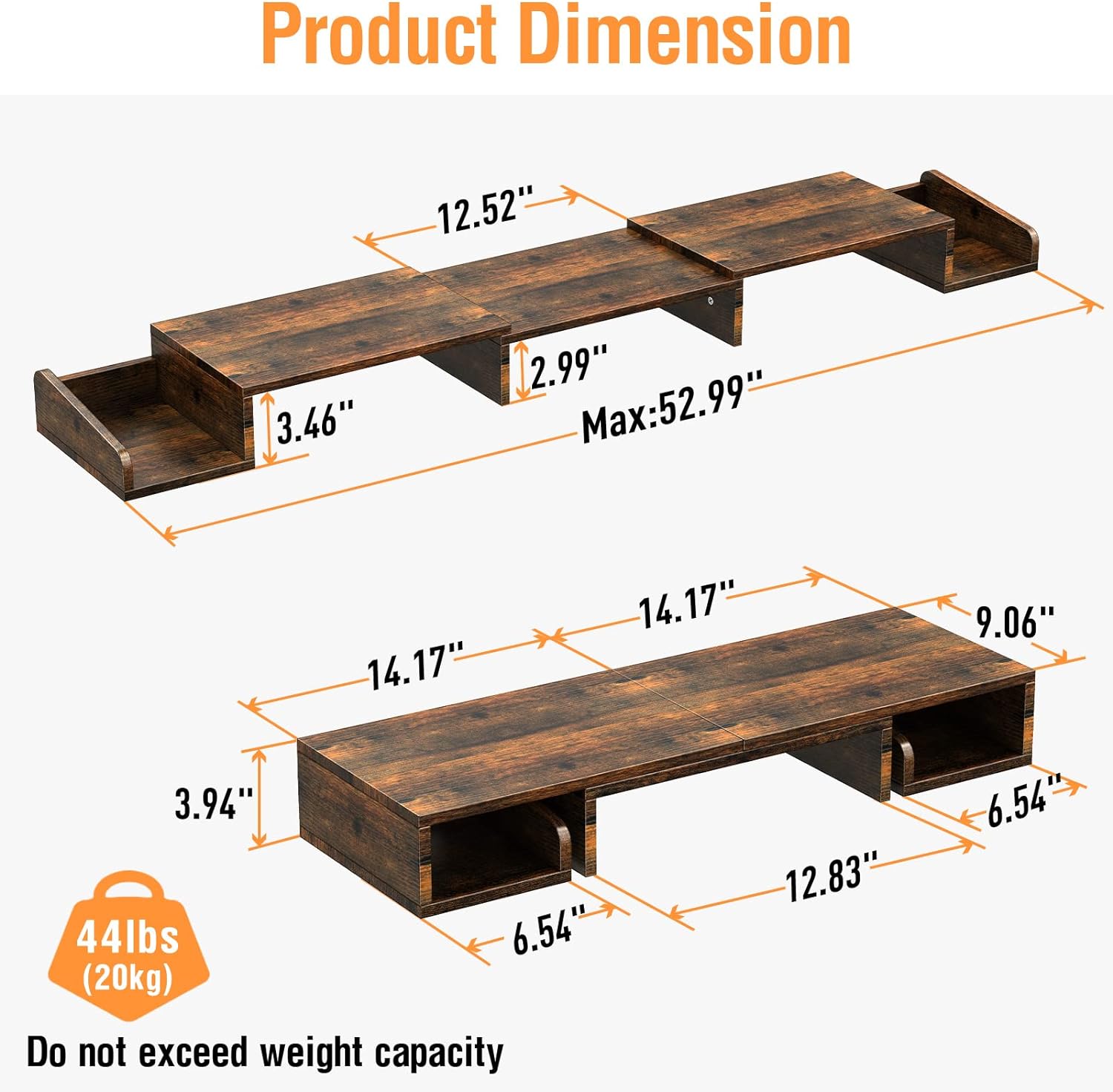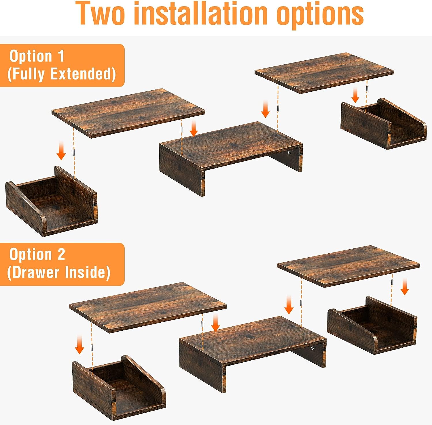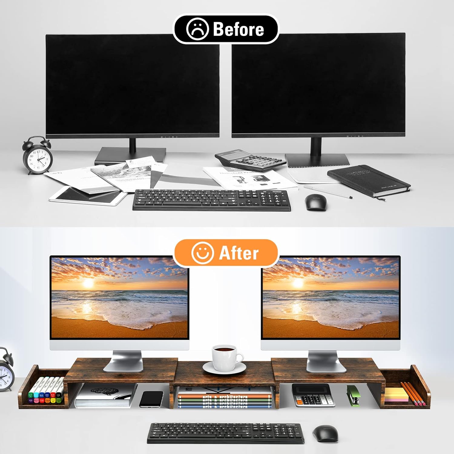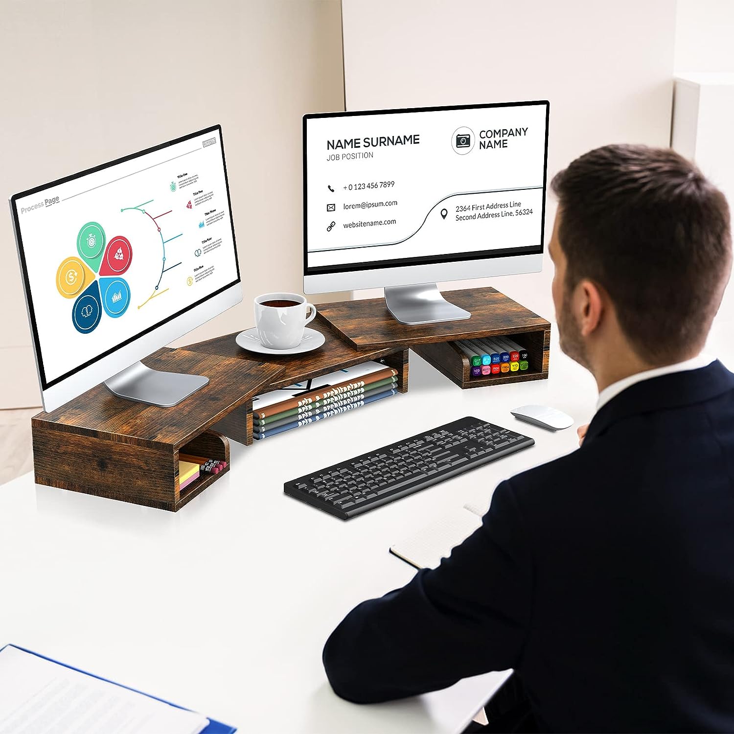 ELIVED Dual Monitor Stand Riser with Two Swivel Drawers, Adjustable Length and Angle, for Desk, Desktop Organizer Computer, Laptop, Printer(Rust Brown)