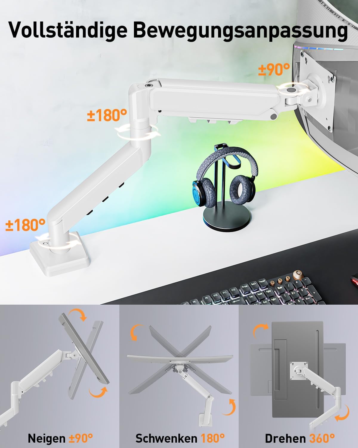 - Optimal adjustment - The monitor mount offers a tilt angle of ±90°, a rotation of 180° and a 360° rotation to find the perfect viewing angle for your gaming PC or workplace.