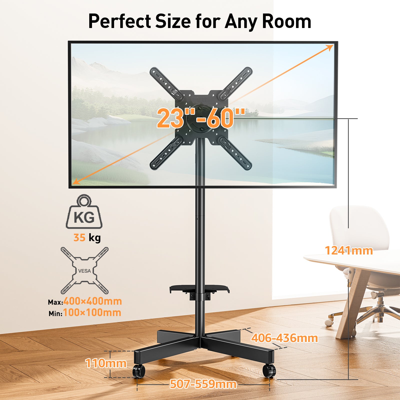 - Universal TV Compatibility: Compatible with most 23-60inch flat/curved TVs (max 35kg load), including Samsung, Sony, LG, and more. Supports VESA patterns from 100x100mm up to 400x400mm for secure mounting.
