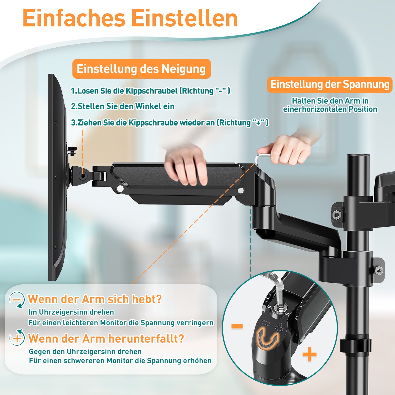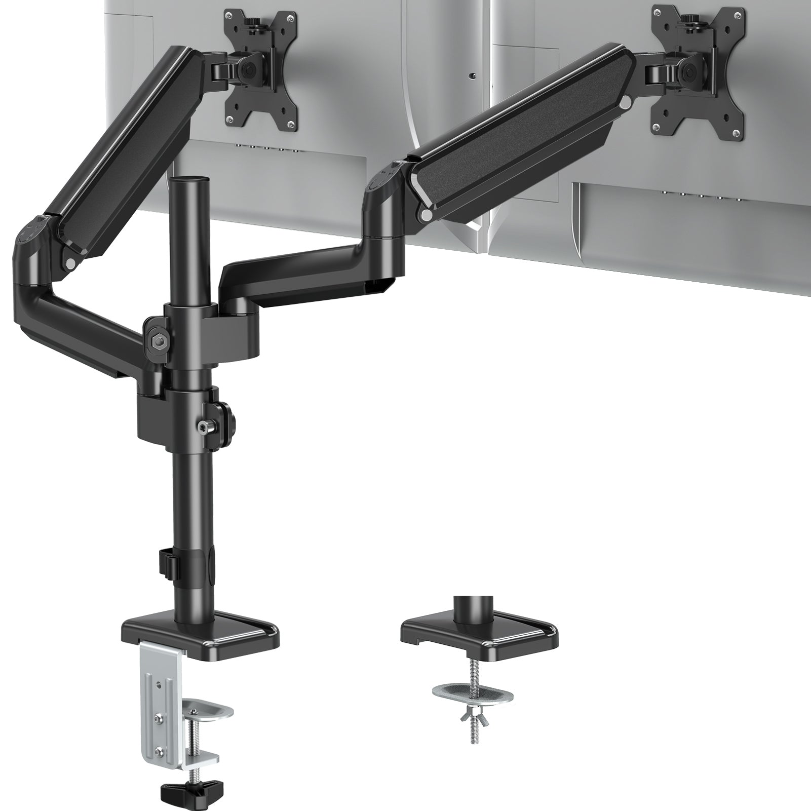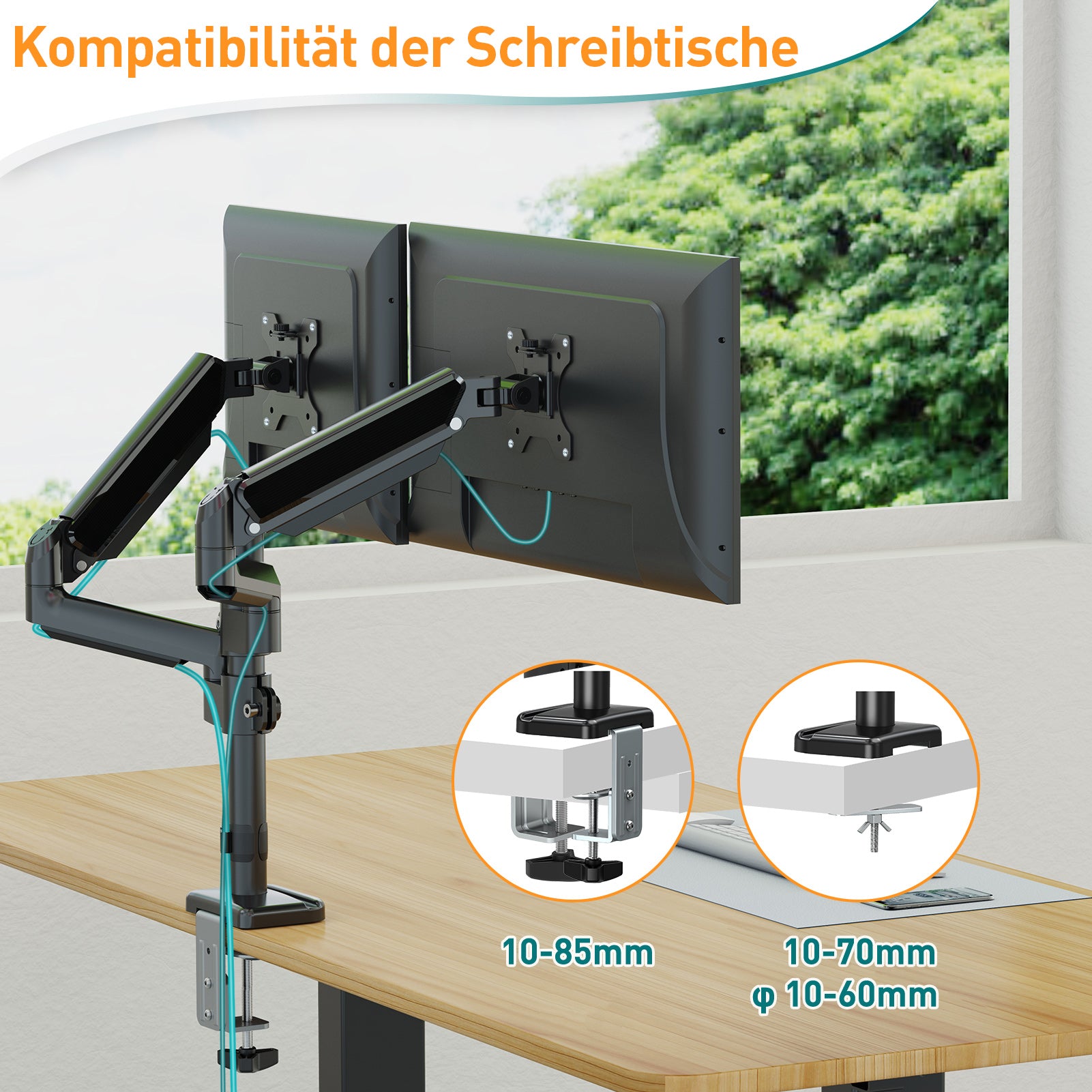 - Langlebig und stabil - Der aus einer soliden Stahlkonstruktion gefertigte Dual-Monitorarm bietet eine hervorragende Unterstützung für zwei Bildschirme mit einem Gewicht von jeweils bis zu 9 kg. Wir verwenden hochwertige Materialien für unsere C-Klemme, Tüllenbasis und VESA-Platte, um eine starke und stabile Verbindung mit Ihrem Schreibtisch und Bildschirm zu gewährleisten.