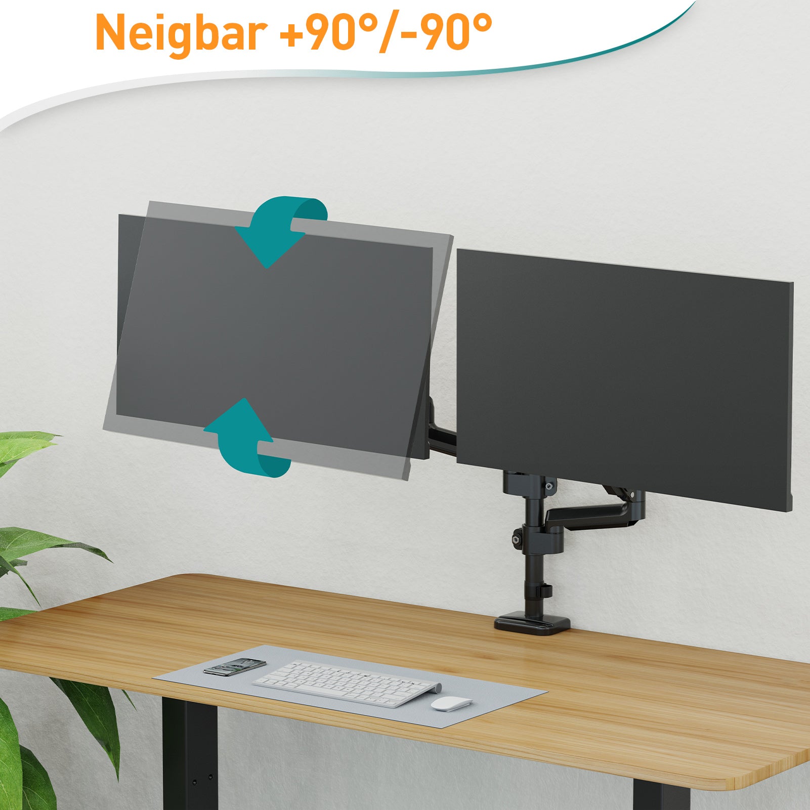 - Passen Sie Ihr Seherlebnis an - Mit ergonomischem Design bietet diese Doppelmonitorhalterung eine Neigung des Monitors von +90° bis -90°, eine Drehung um 180° und eine Drehung um 360°, um den ergonomischen Komfort zu maximieren. Sie können die Position Ihrer Monitore mit diesem Doppelmonitorarm ganz einfach an Ihre Bedürfnisse anpassen.