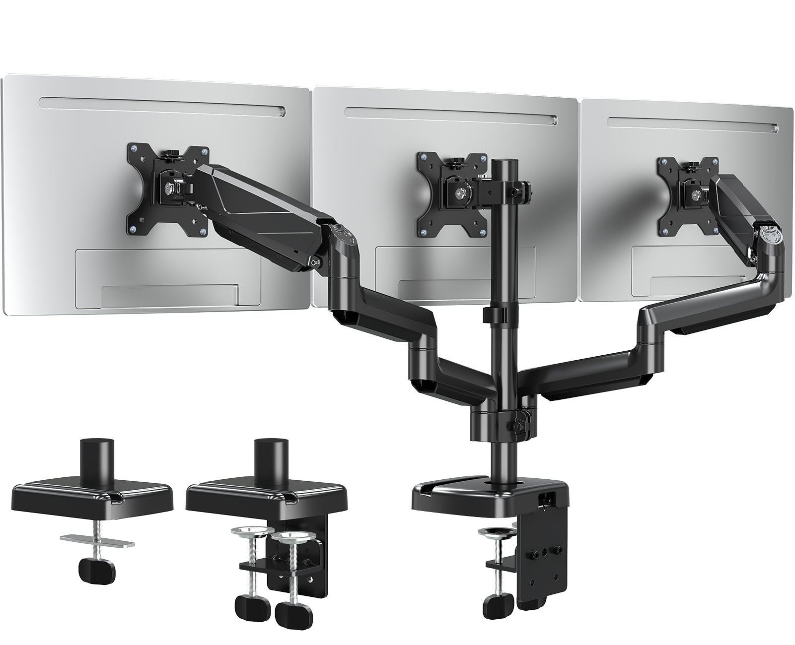ELIVED Monitor Halterung 3 Monitore für 13-27 Zoll Bildschirme bis zu 9kg mit VESA 75/100, Gasdruckfeder 3 Monitorhalterung, Neigbar Schwenkbar Drehbar Höhenverstellbar Monitor Arm EV006