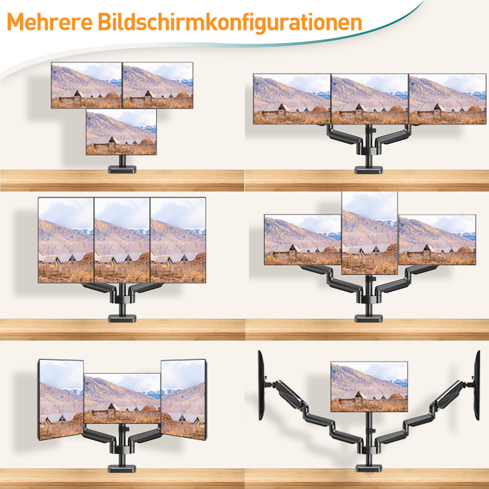 - PLATZ SPAREN MIT ROBUSTE MONITORHALTERUNG: Sie können 3 Monitore vom Schreibtisch mit einem 3 Monitore-Halterung statt 3 Monitorfüßen halten. Dadurch sparen Sie mehr Platz auf Ihrem Tisch und machen Ihren Arbeitplatz geräumig und ordentlich. Die Drahtklammer sorgt für die Ordnung und den Schutz von Kabel.
