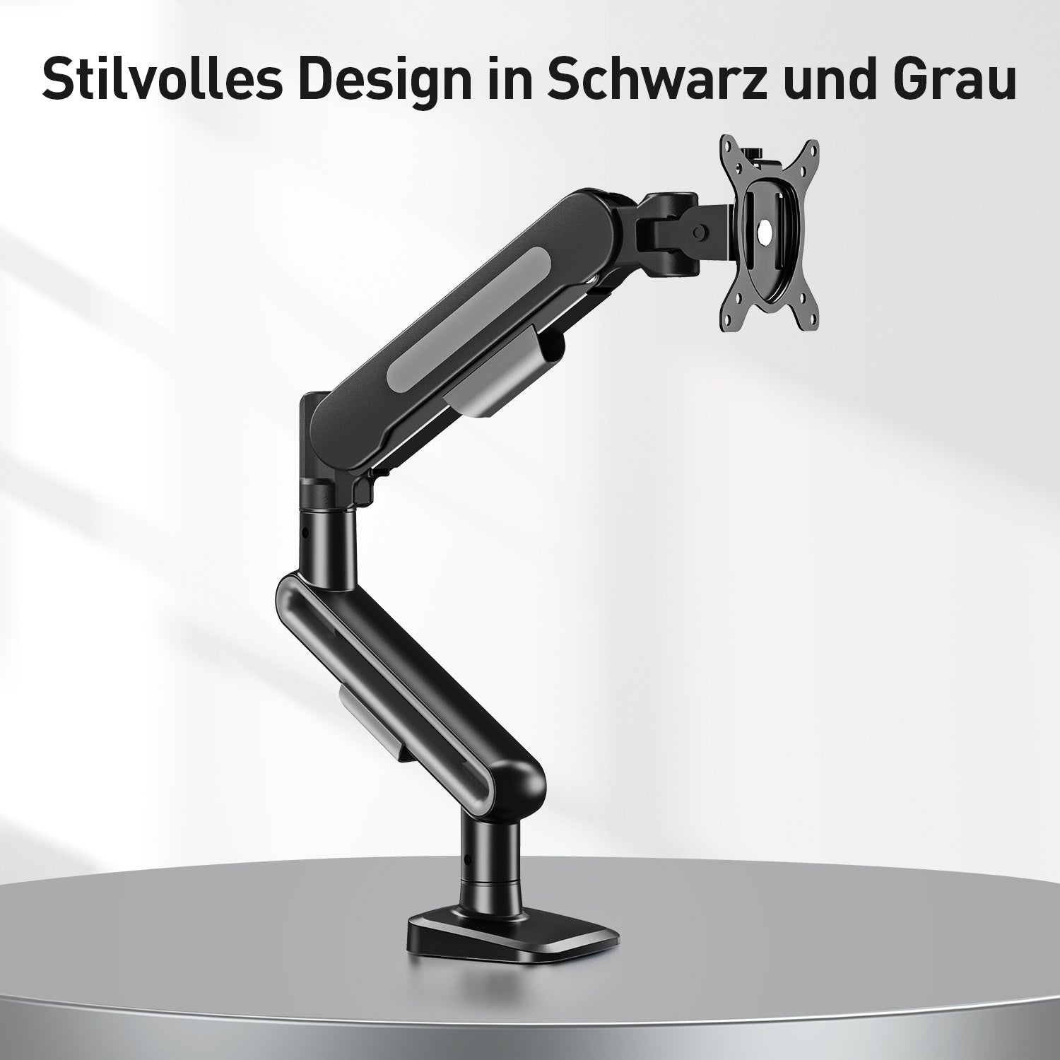 - Elegantes Design - Moderner Monitorarm in schwarz-grau für Büro & Gaming. Integriertes Kabelmanagement schafft minimalistischen Look. Die elegantes designund geschwungene Linien machen ihn zum Eyecatcher - ob im dunklen Gaming-Bereich oder hellem Homeoffice: Stil und Funktion perfekt vereint.
