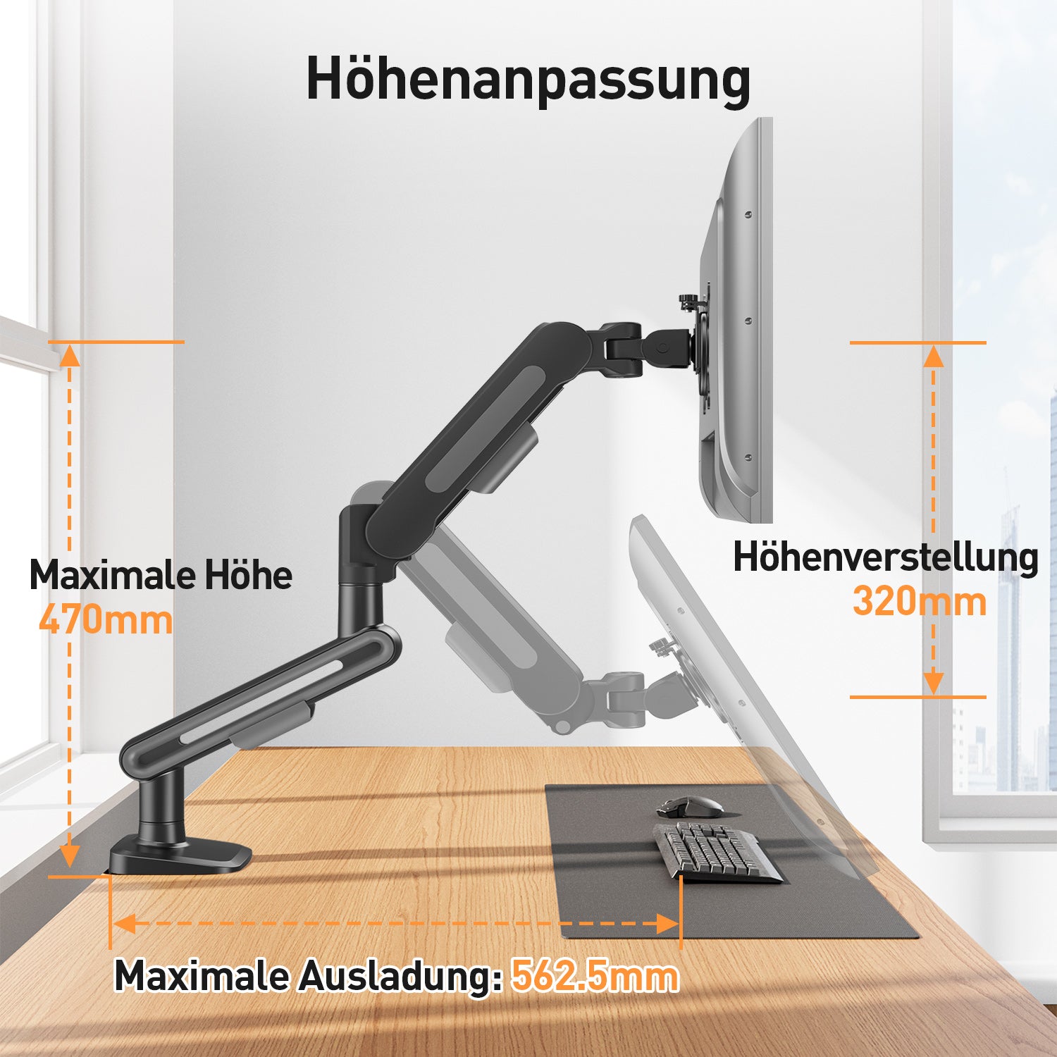 - Flexible Einstellungen - Perfekte Ergonomie mit 320mm Höhenverstellung, +75°/-45° Neigung, 180° Schwenkbereich & 360° Rotation. Maximale Armreichweite 562.5mm bei 470mm Höhe - ideal für entspanntes Arbeiten im Büro oder intensives Gaming. Die präzise einstellbare Bildschirmhalterung verwandelt jeden Arbeitsplatz in eine Wohlfühloase!