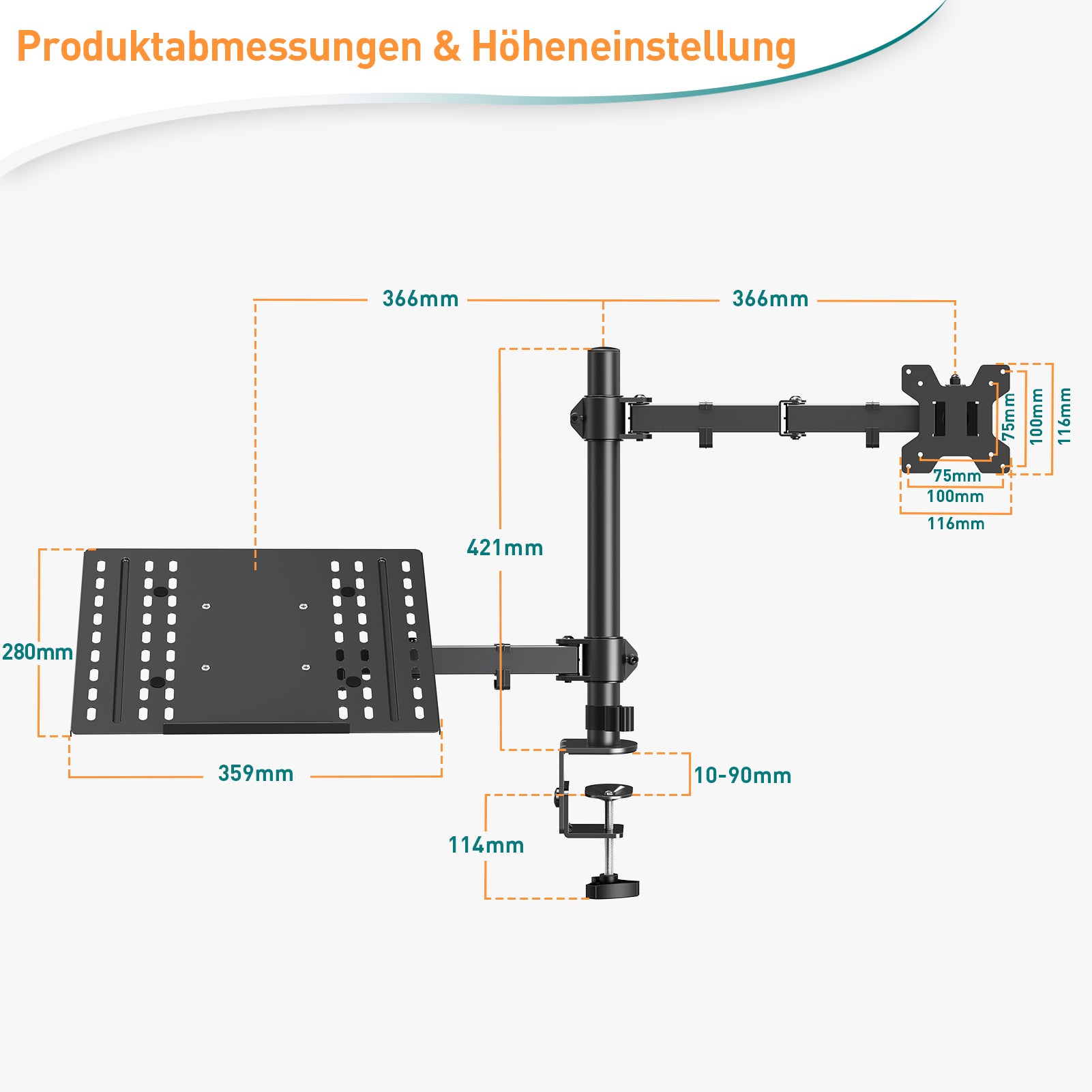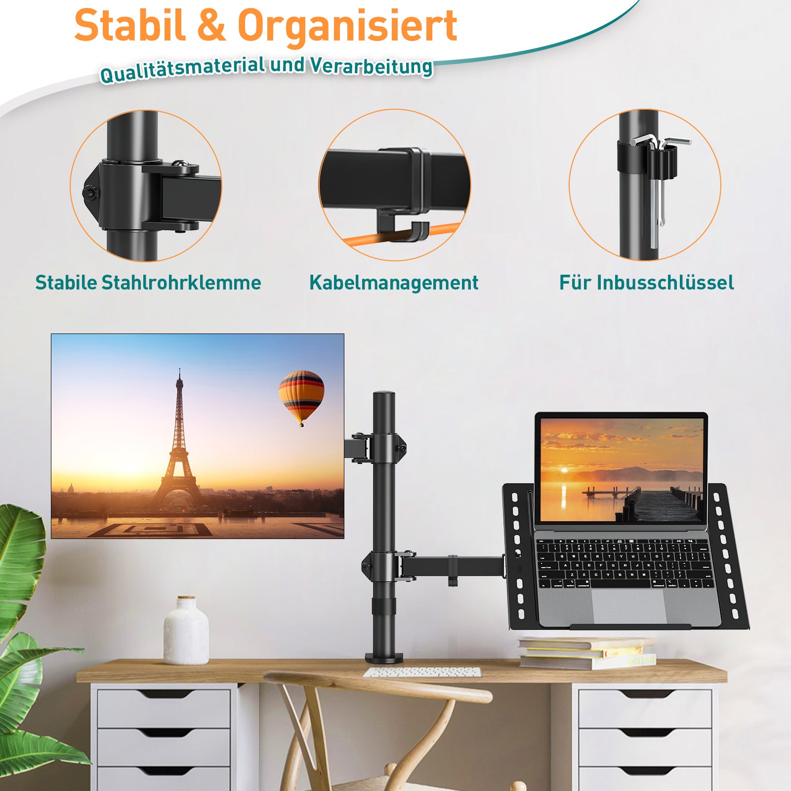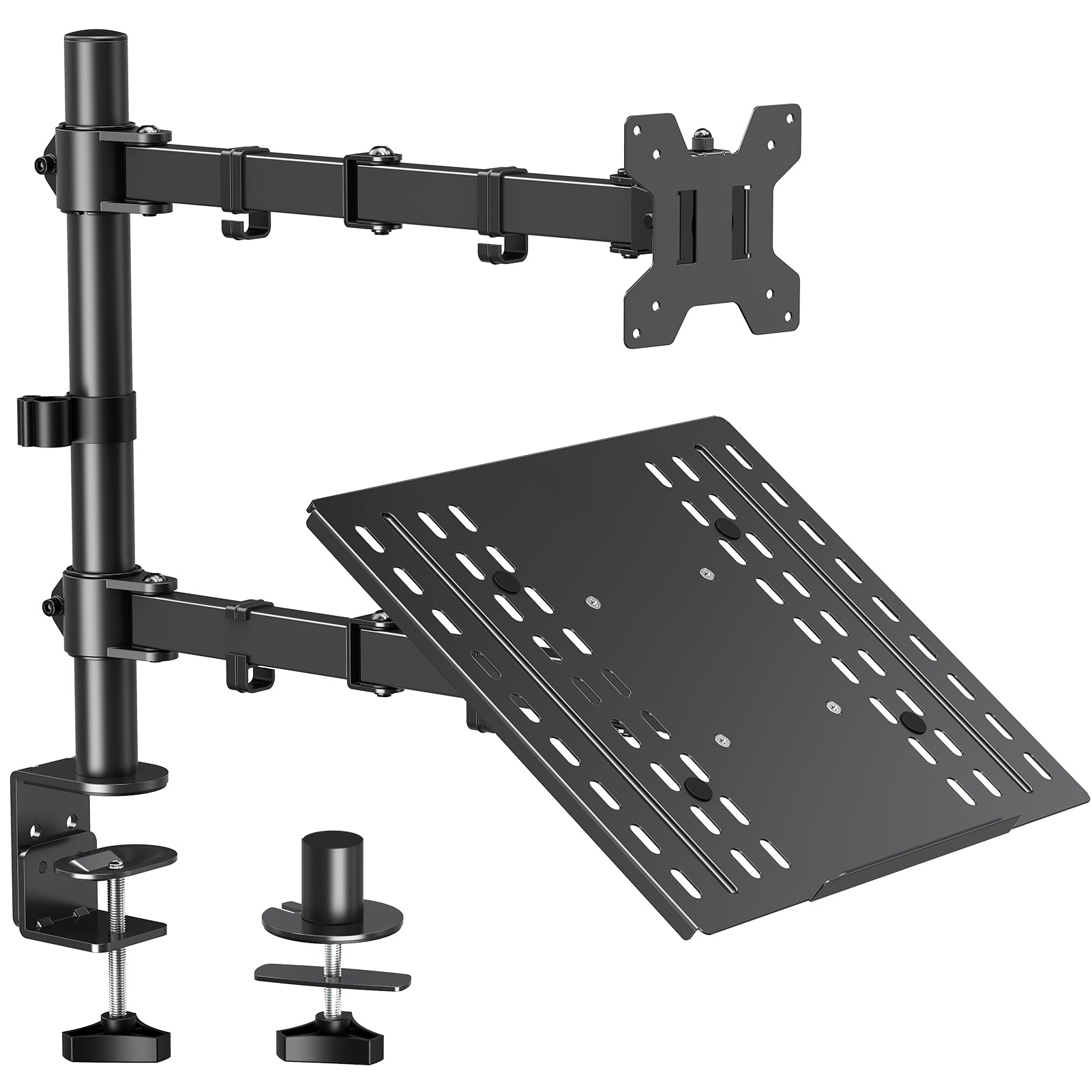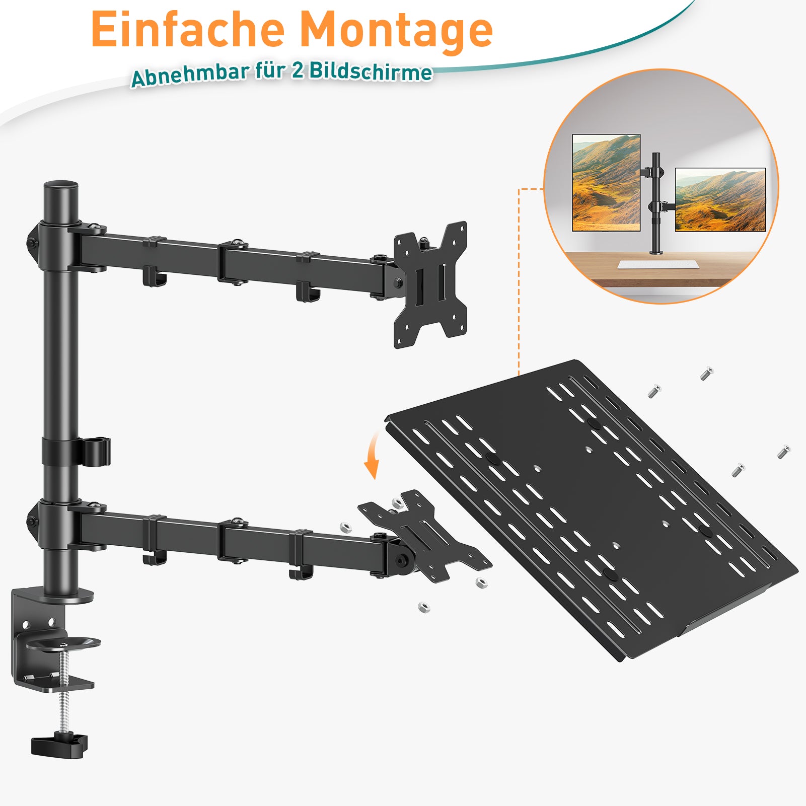 ELIVED Monitor Halterung mit Laptop Arm für die meisten 13-27 Zoll LCD LED Bildschirme und bis zu 15,6 Zoll Notebooks, VESA 75x75-100x100mm, EV024