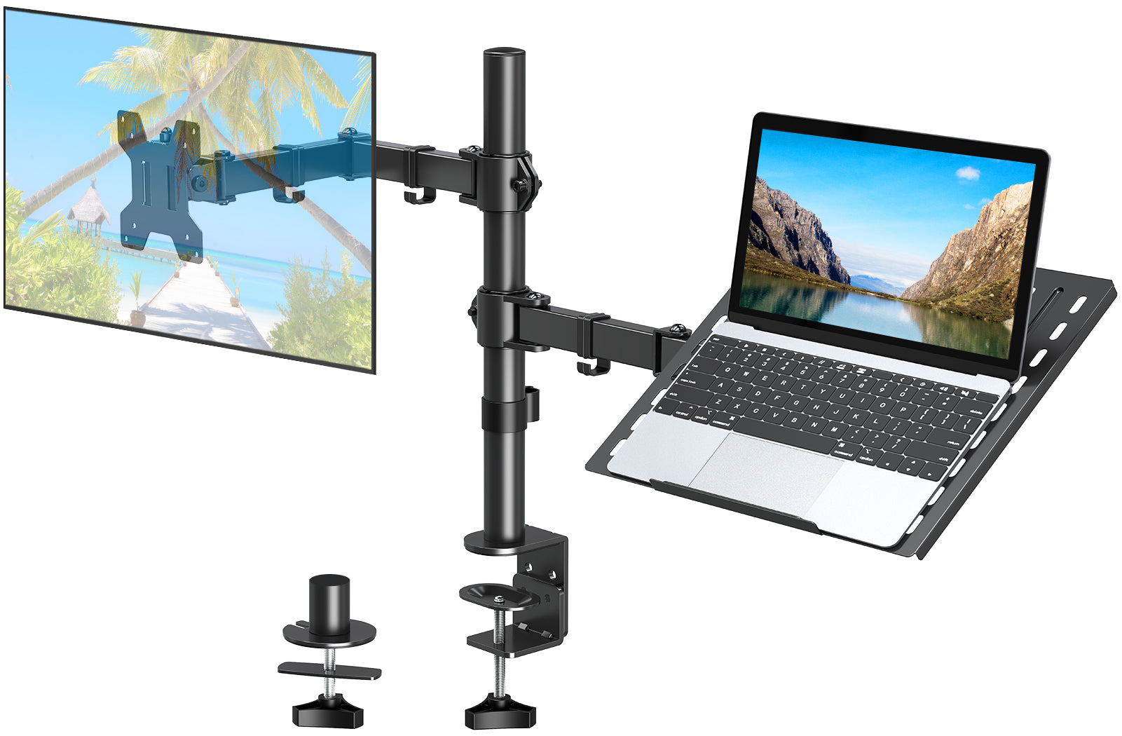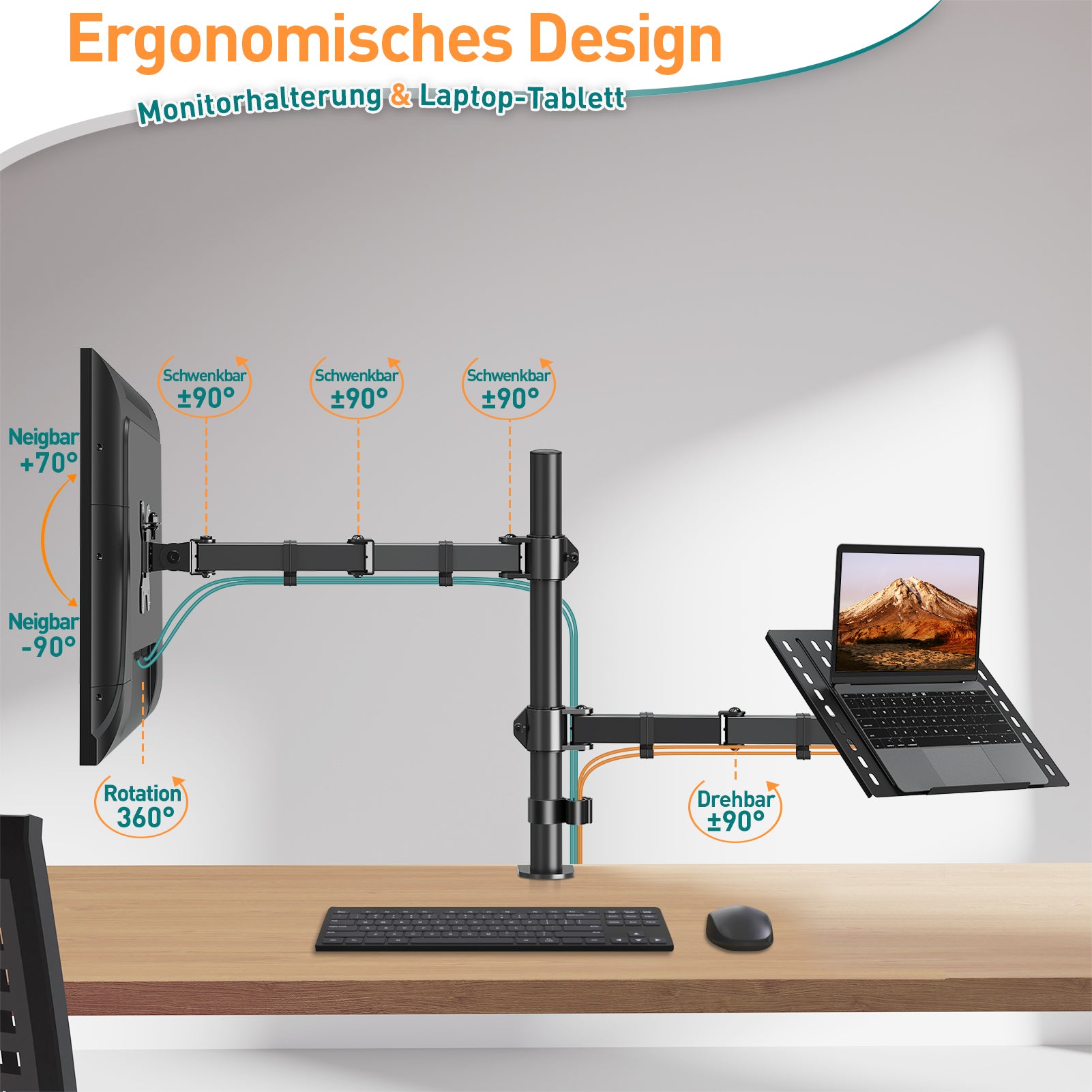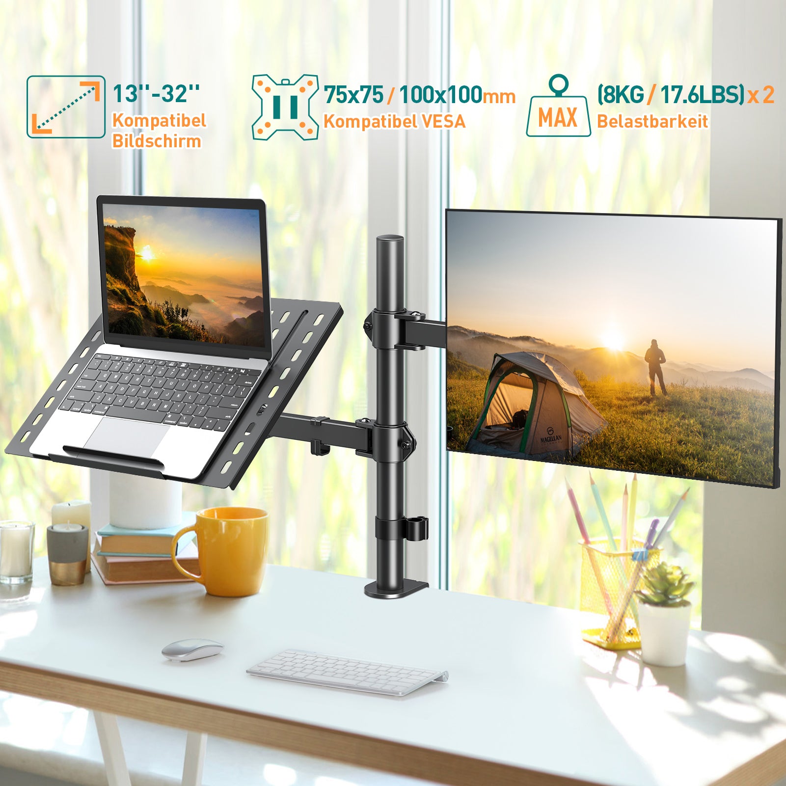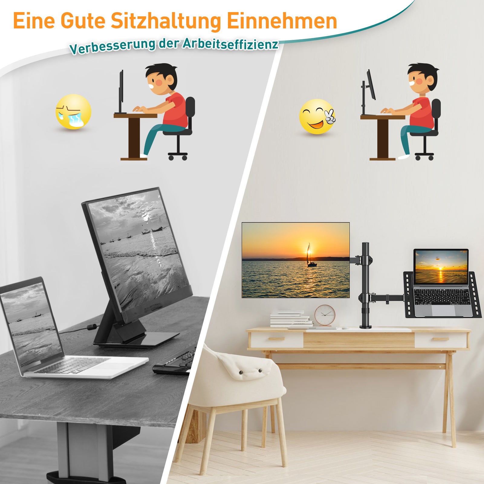 ELIVED Monitor Halterung mit Laptop Arm für die meisten 13-27 Zoll LCD LED Bildschirme und bis zu 15,6 Zoll Notebooks, VESA 75x75-100x100mm, EV024