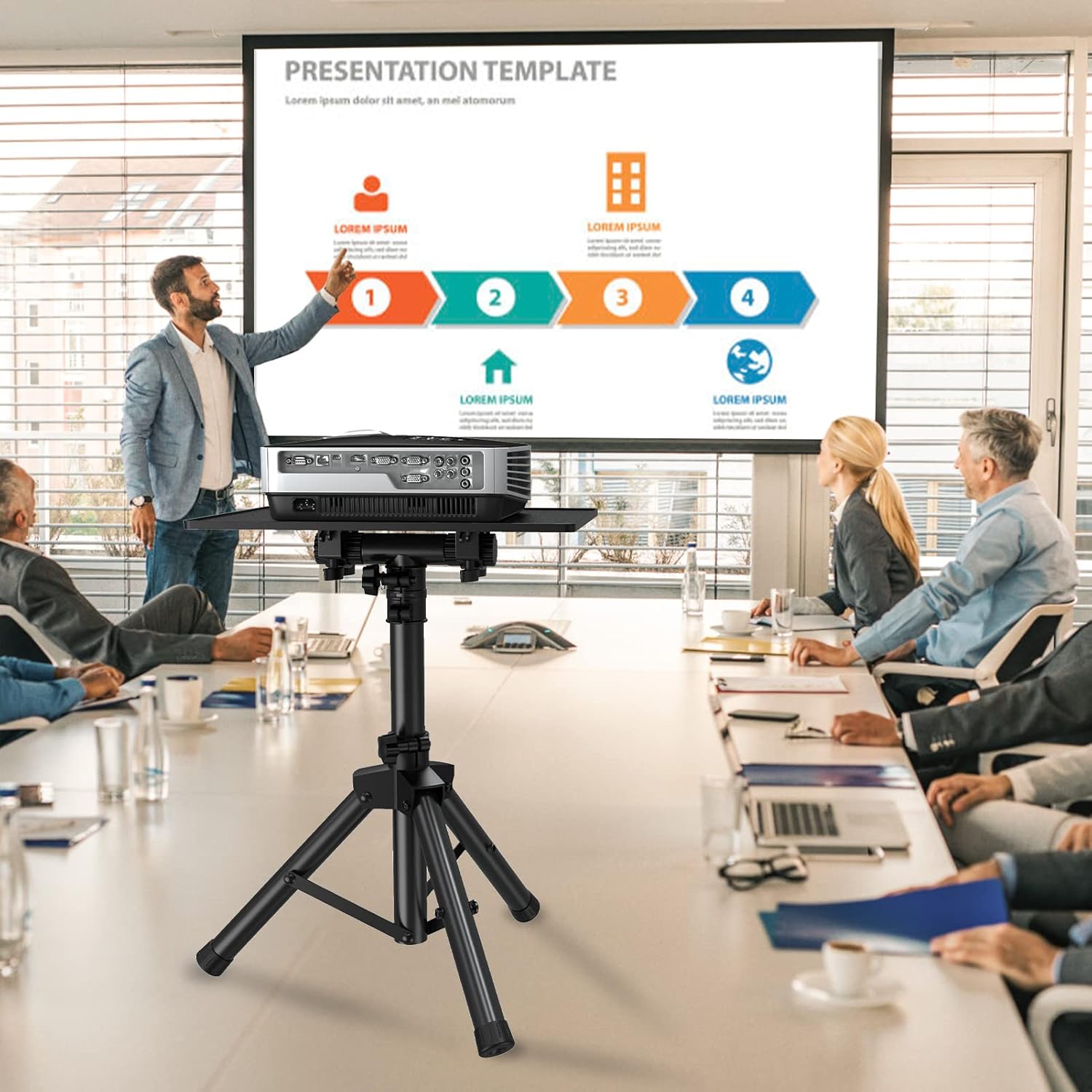 - Heavy Duty Construction: This projector stand is made of ultra strong and durable metal. Unlike other slim ones, our reinforced and extra thick tripod stand with non-slip feet ensures great support and stability to hold your equipment indoors and outdoors. The tripod for projector can hold up to 13.2lbs and the supporting tray is 15.7" x 11" with raised edge for security concerns.