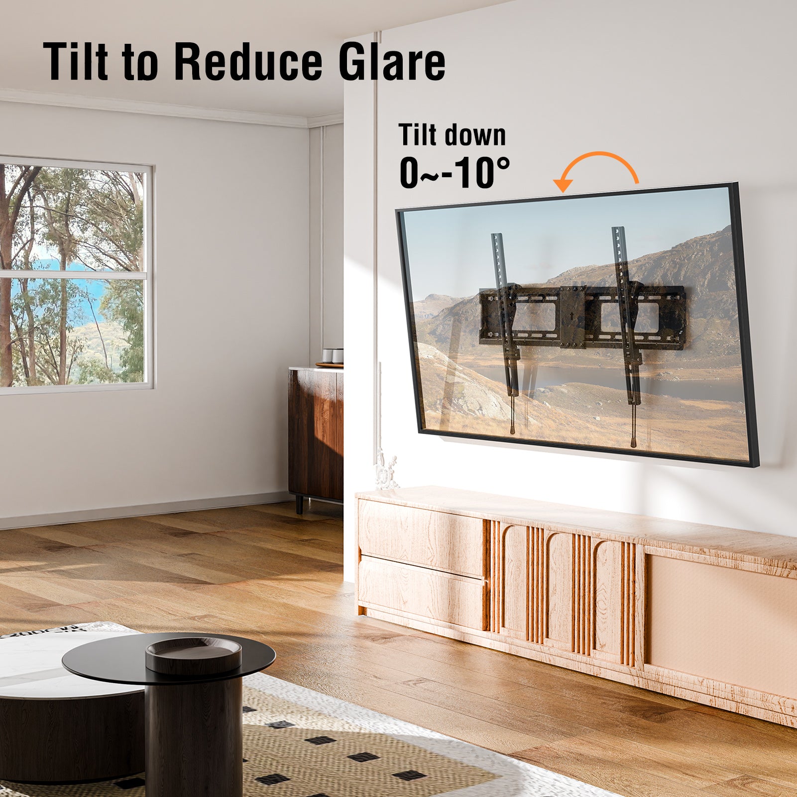 - Tilt to Reduce Glare: This wall backet can tilt your screen down to 10 degrees. Enjoy the best viewing angle when watching TV, reduceing neck/eye strain