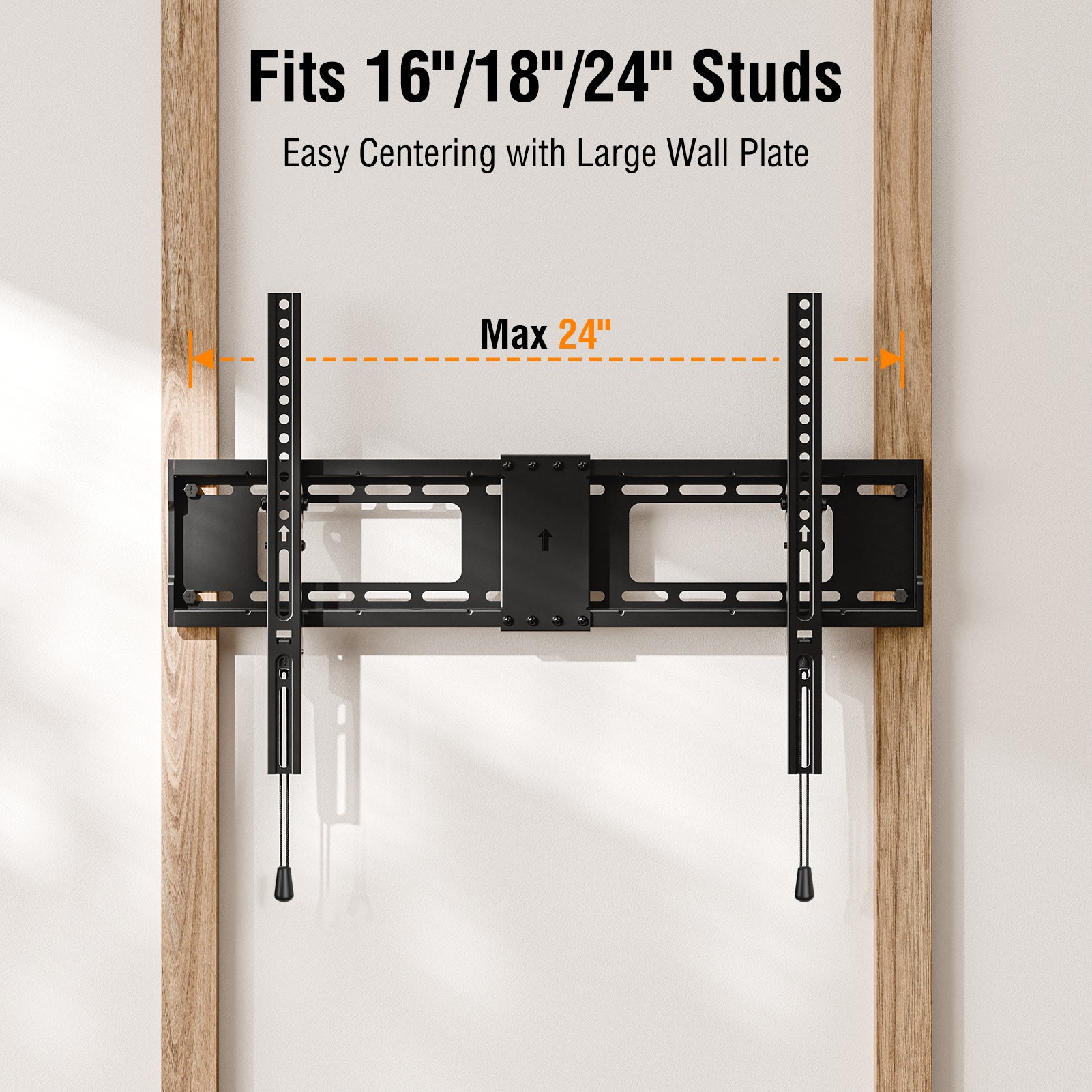 - Universal Compatibility: Tilt TV mount fits most 37" to 85" TVs up to 132 LBS, with VESA pattern from 100x100mm to 600x400mm, fitting up to 24" wood studs. Please check the TV weight, TV VESA, wood stud spacing and inputs location before purchase