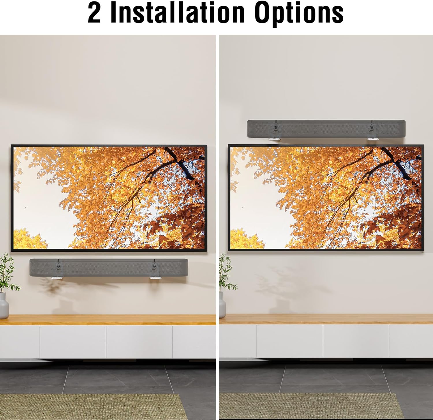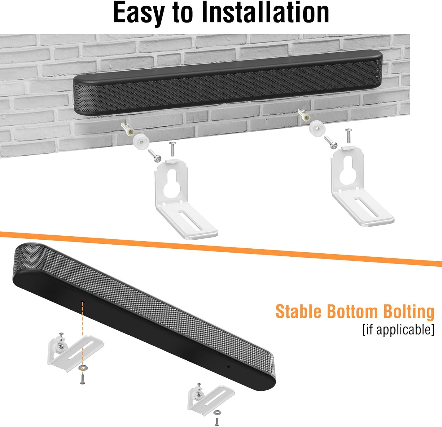 - Anti-Drop Design: The mounting bracket comes with strong adhesive so that your soundbar won't fall off easily then can protect your soundbar very well. It's suitable for soundbars with threaded insert on the bottom and those without.