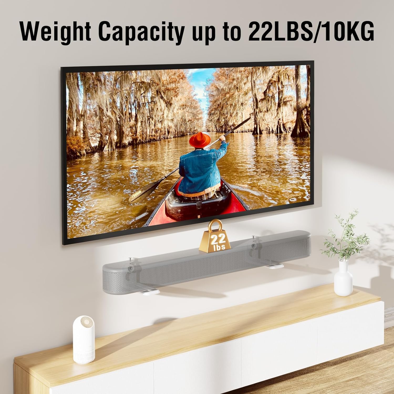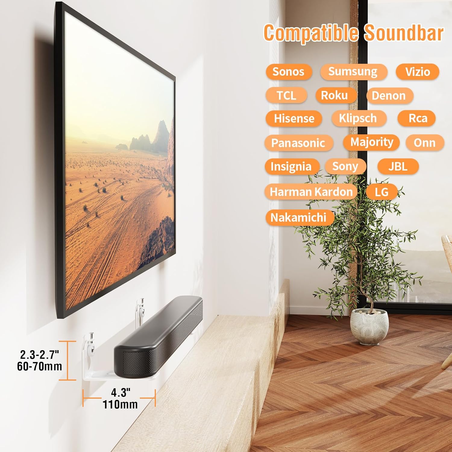 - Universal Soundbar Mount: Our brackets are perfect for most soundbar systems, the max width that can fit the soundbar is 4.3", weight capacity is up to 22 lbs. Compatible with Sonos, Samsung, Vizio, Sony, JBL, TCL, Roku, Harman Kardon, Denon, Rca, Nakamichi, LG, Klipsch, Insignia, Onn, Majority, Panasonic, Hisense and so on.