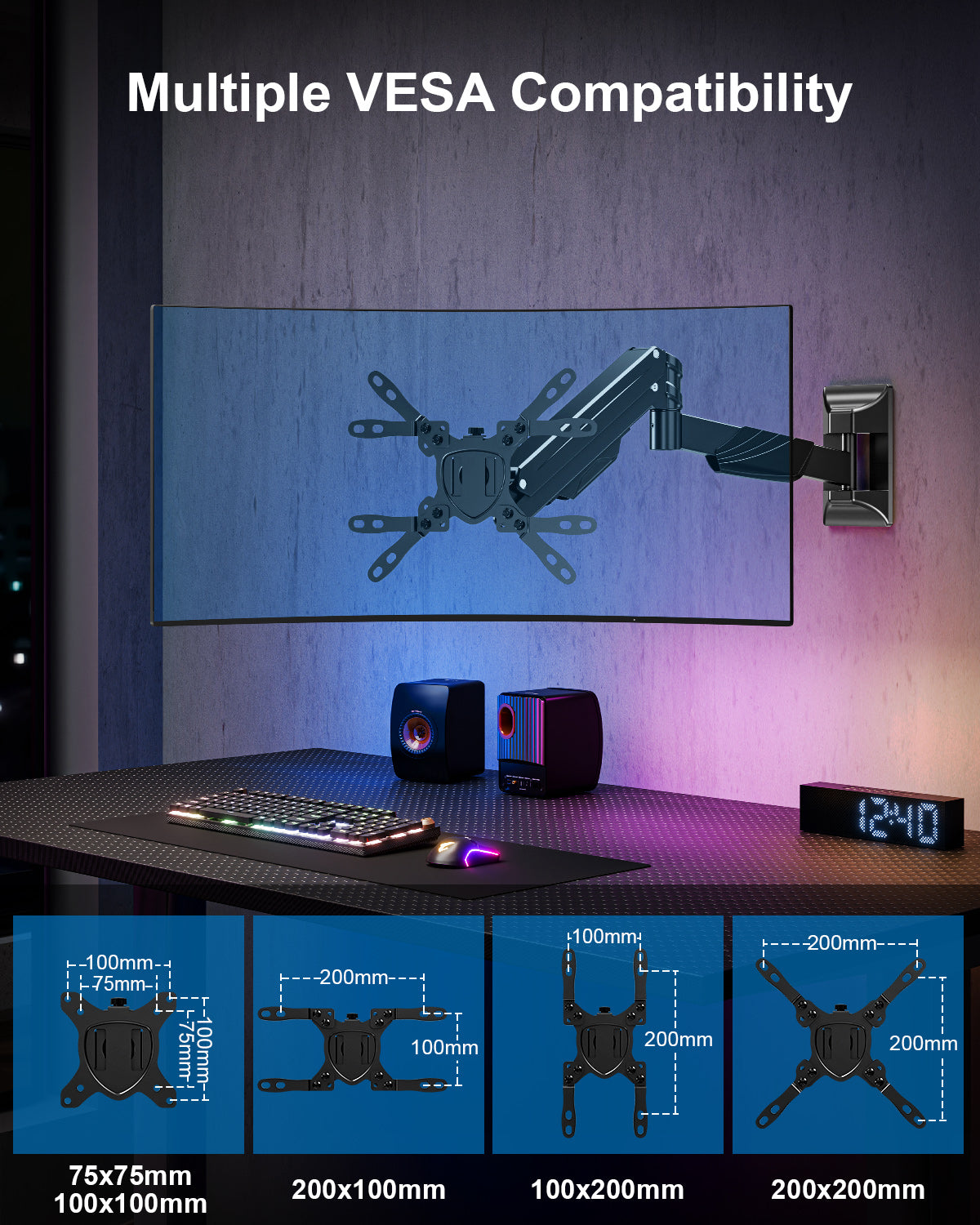 - Universal Compatibility : Featuring a VESA extension bar, it's fully compatible with 75x75/100x100/150x150/200x100/200x200mm VESA patterns, fitting most monitors on the market. No extra accessories needed—quick installation saves time and costs for device upgrades.