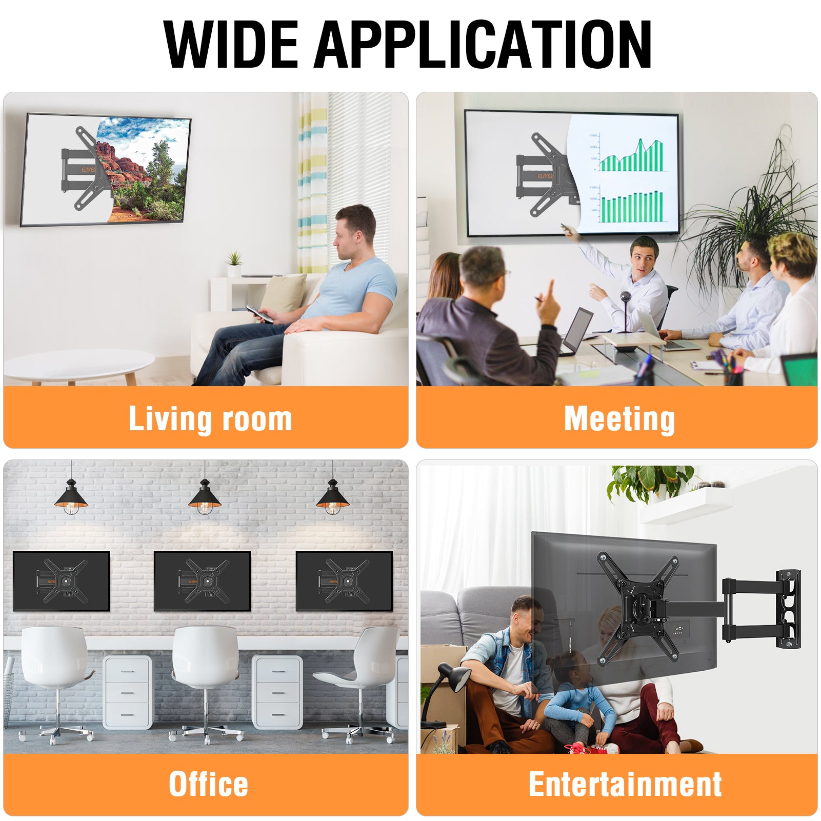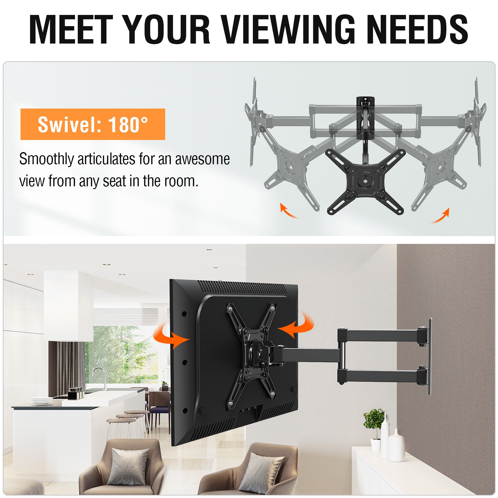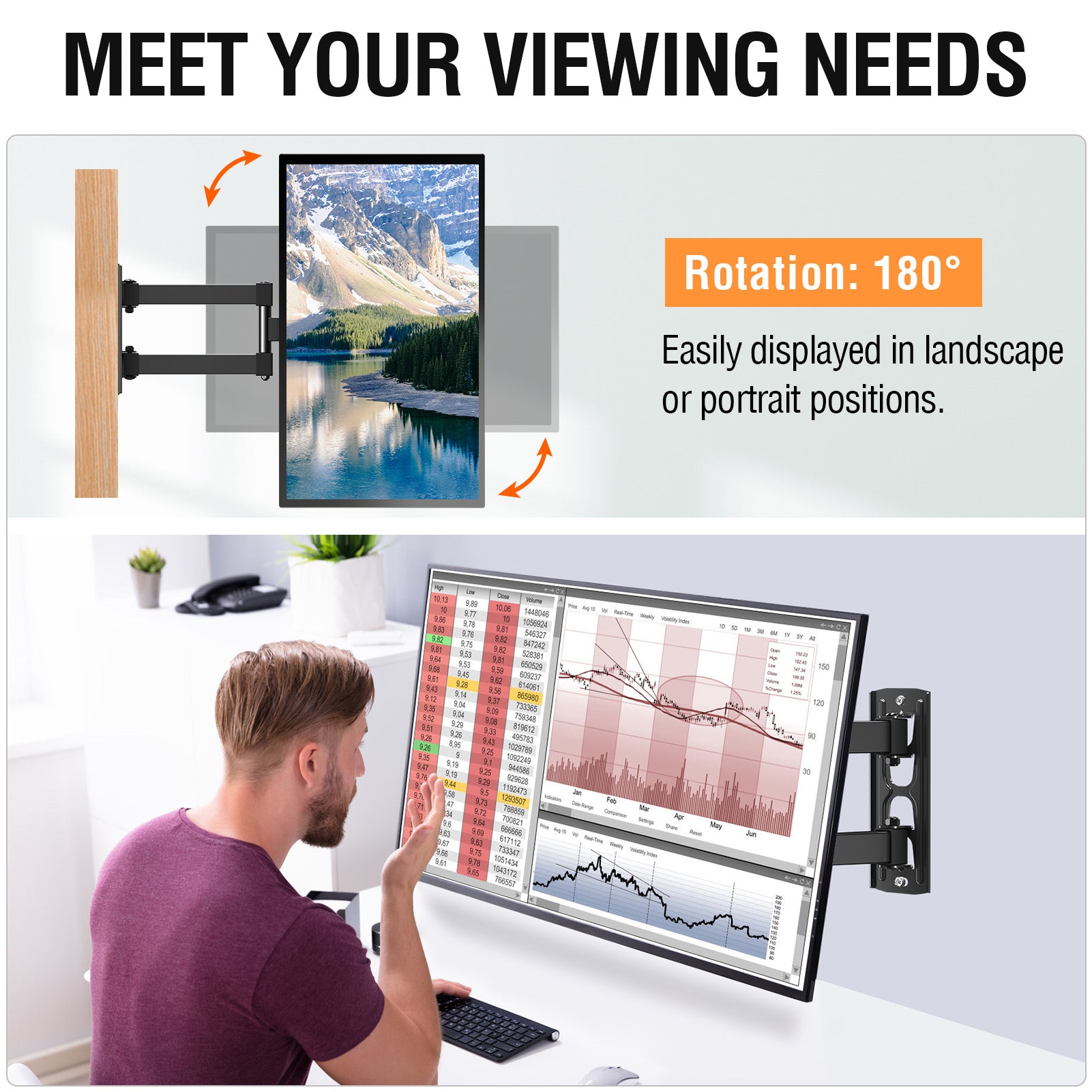- 180° Rotation & Swivel Design - With the 180° rotation unique design, the full motion TV mount can easily display in landscape or portrait position to meet your special need. Also, this swivel TV mount can swivel TV 180° to cover any angles in your home for the ultimate viewing experience.