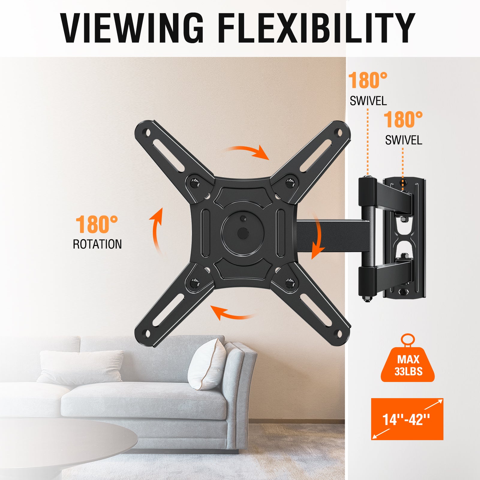 HOMOUNT UL Listed Full Motion TV Monitor Wall Mount for Most 14-42 Inch LED LCD Flat Screen TVs & Monitors, Swivel Tilt Extension Rotation TV Mount Bracket Max VESA 200x200mm, up to 33 lbs